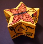 Here are the little boxes that I made for my coven mate’s birthdays.  Note the butterfly box, each side has a snapshot in the life of a chrysalis becoming a butterfly.  The sun is for the other Cancer with Leo stellium, and the flowers for my fae friend, the Leo with Leo stellium.