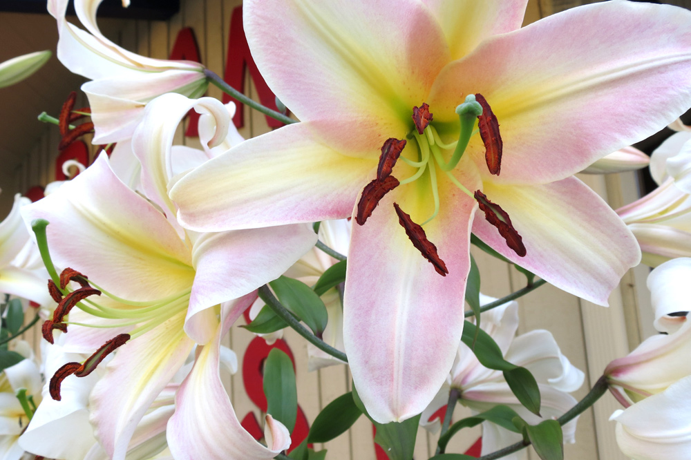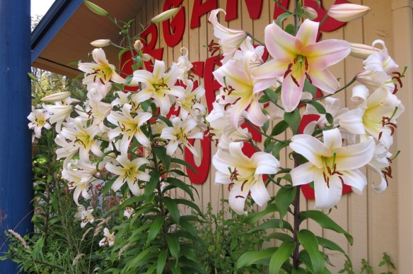 I never knew lilies grew this tall.  Almost 7 feet!  In front of Soul Food Books…