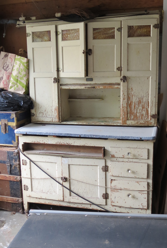 For years I’ve been storing my grandmother’s ancient kitchen queen with the intention of renovating the old gal and using her to store my herbs and witchy tools, books, and the like. The pull out porcelain enamel bread worktop would have been great for mixing potions. Potions I NEVER make.