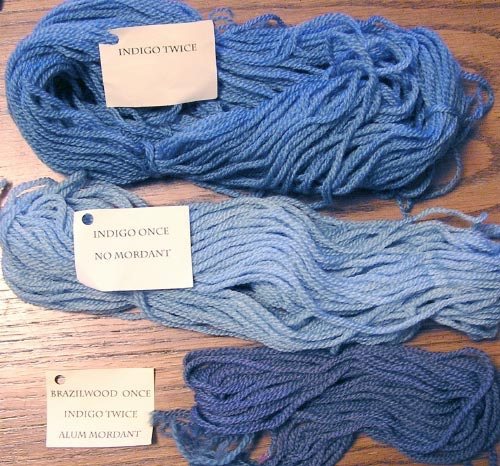 • Blues – Indigo, Woad, and in the case of the bottom shade, Brazilwood first then indigo in an attempt at purple