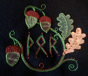 There is one other reason my elbow hurts and it is crafty and textile embroider-y. The most fabulous Sarah from Witch of Forest Grove posted a photo of her tarot deck and in the photo was one of the bags I made. A very simple bag. That photo generated 4 custom tarot bags in as many days! So I’ve been typing and working hard and coming home and stitching every night. Here is a taste. This is a crappy phone photo so it’s blurry and it doesn’t come close to how yummy I think this looks but someone will be happy to see this progress.