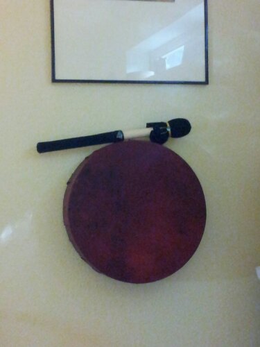 One day I was working at home and kept smelling urine. Right by my computer chair two rooms away from the bathroom. (god, typing HURTS) I got down on my knees and sniffed and sure enough, massive stench. Oh man. What the fuck? I saturated the spot with pet odor remover and it is better. I think she smelled the discarded potty mat and thought that room was good to pee in. But I had to make sure THAT never happened again so how to keep mitty out of my studio??? There is no door, the room is too small and the door is in the garage, so simply closing a door isn’t an option. To stop her that day until I had a better plan, I used a shelf from my oak bookcase (I have a little corner with a couple staffs and shelves and an ironing board and curtain rods and my witch broom (I knnnnoooowwwww)) and well, it was handy. So I put the shelf across the door.