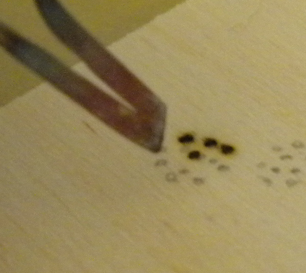 Dots: Big and SmallThe larger dots I press in once and then turn the board 90 degrees and press again with a tiny turn right before lifting off the wood to soften the dot. The small shading dots I basically slowly tap the wood with the point. |