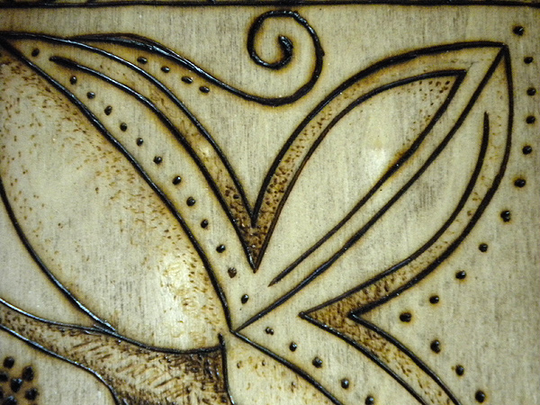 TechniquesI prefer to burn in this order; 1) outline all of the major lines, 2) then the smaller lines like on the thorns in the third image, and 3) then the shading |